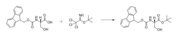 In a dry reaction vessel, dissolve Fmoc-L-serine in ethyl acetate and stir until completely dissolved. Then slowly add a cyclohexane solution of tert butyl trichloroacetamide, control the temperature, and continue stirring until the reaction is complete.